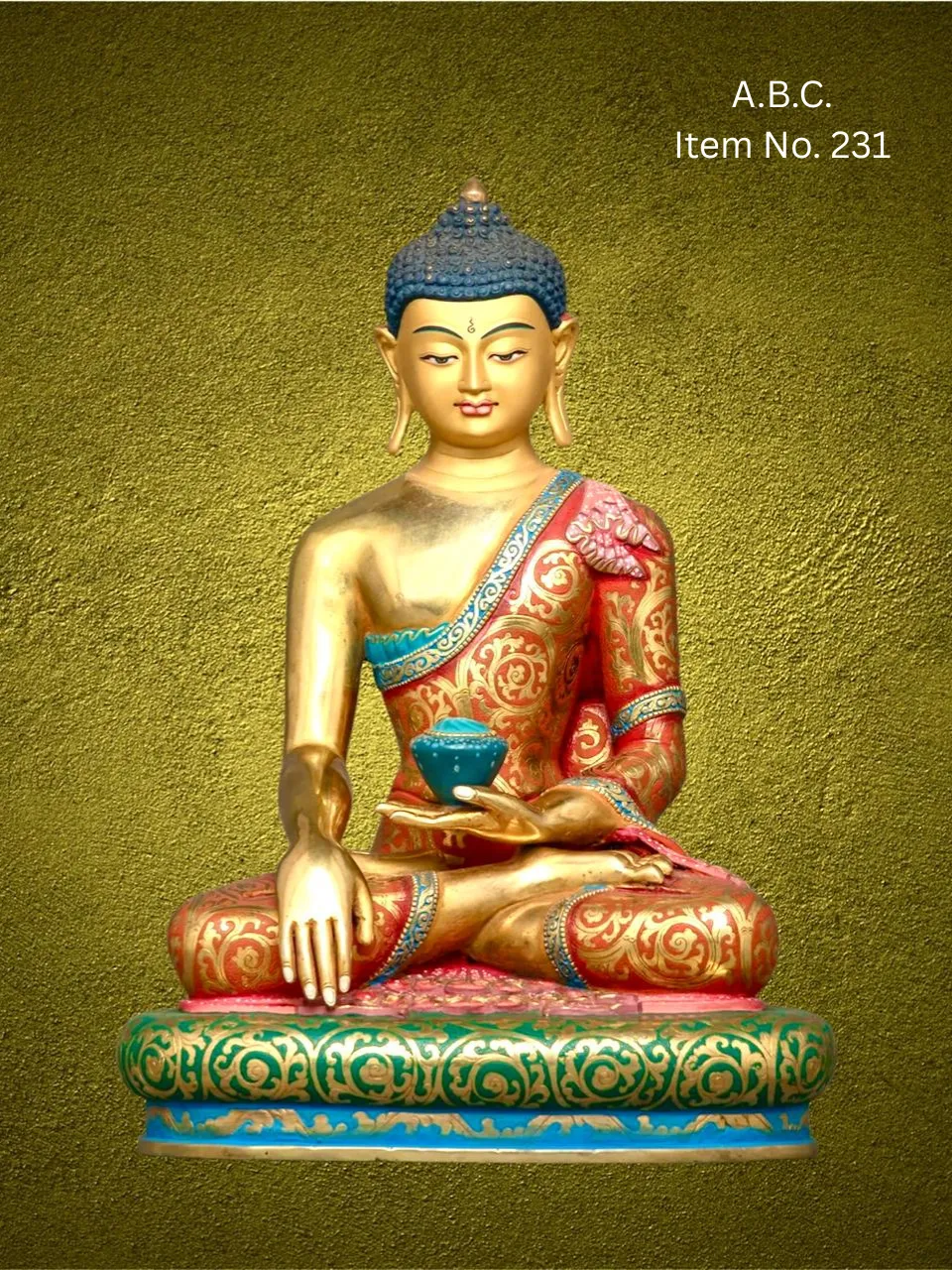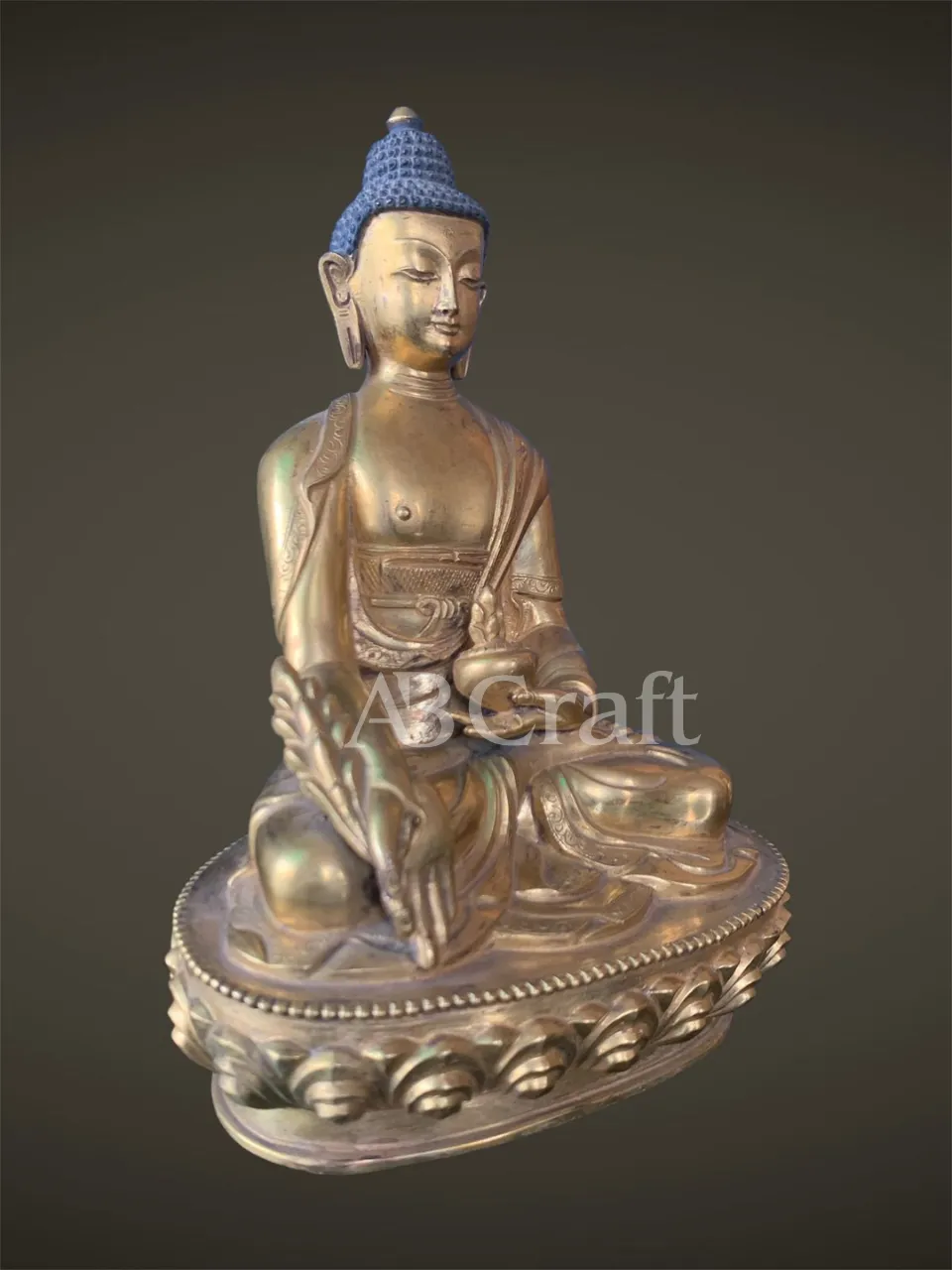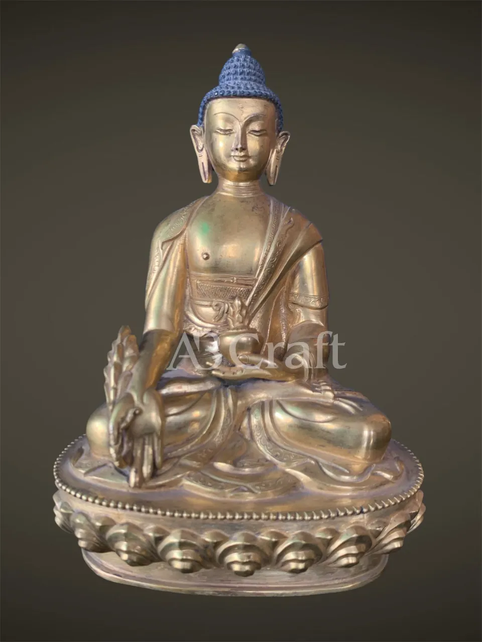 Our Medicine Buddha handicrafts are skillfully handcrafted by master artisans using traditional Himalayan techniques. He is depicted seated in a meditative posture, holding a healing myrobalan plant in his right hand and a bowl of medicinal nectar in his left, signifying the power to heal suffering and eliminate the causes of disease.