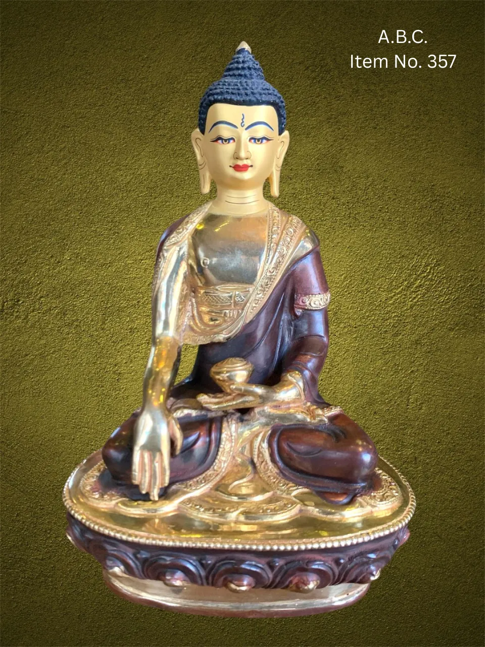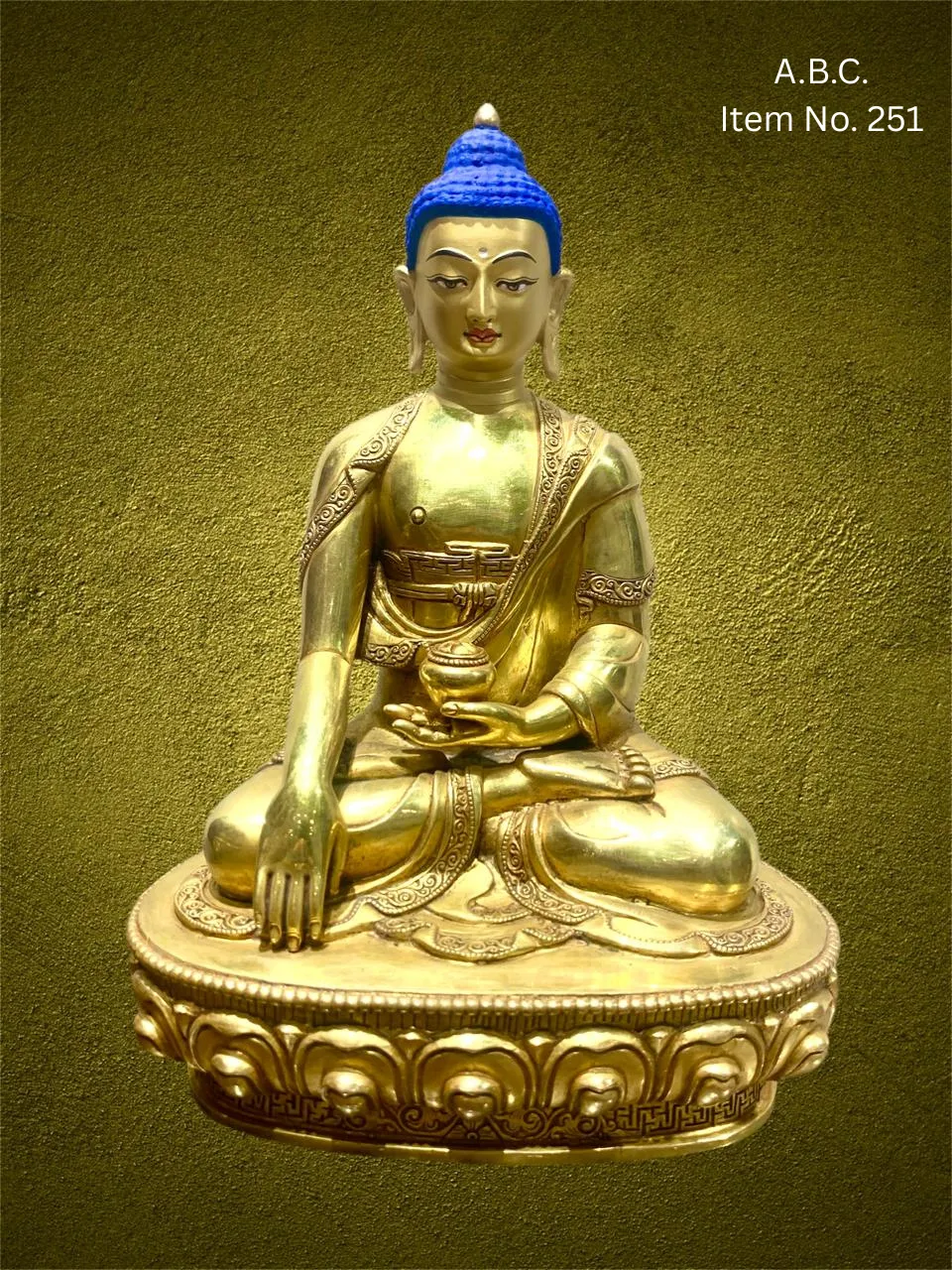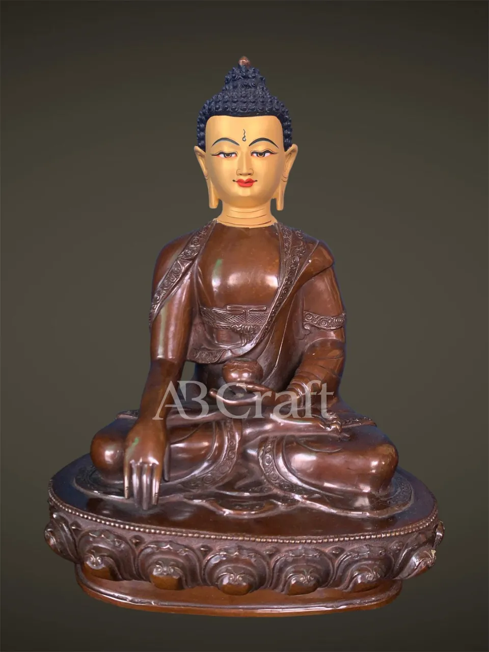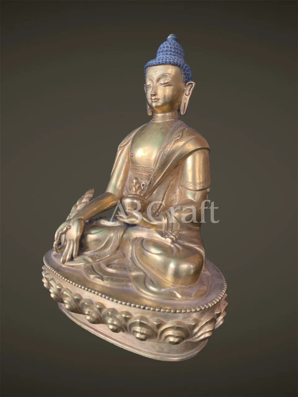 Our Medicine Buddha handicrafts are skillfully handcrafted by master artisans using traditional Himalayan techniques. He is depicted seated in a meditative posture, holding a healing myrobalan plant in his right hand and a bowl of medicinal nectar in his left, signifying the power to heal suffering and eliminate the causes of disease.