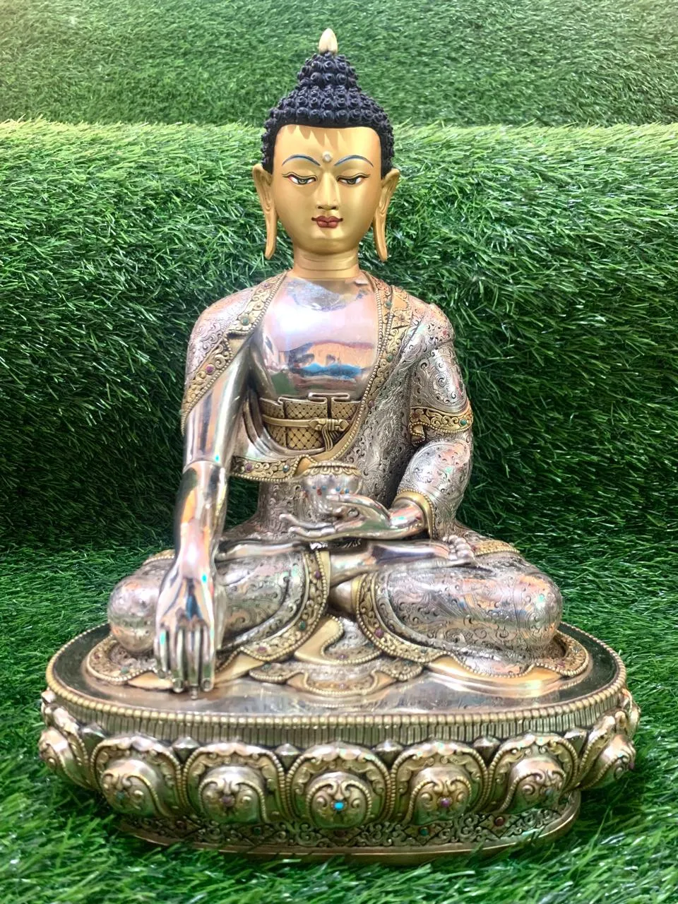 Crafted from high-quality materials such as bronze, copper alloy, gold plating, and often decorated with turquoise and coral inlays, each statue reflects both sacred detail and artistic beauty. The serene expression, precise hand mudras, and symbolic elements come together to create a powerful spiritual presence.
