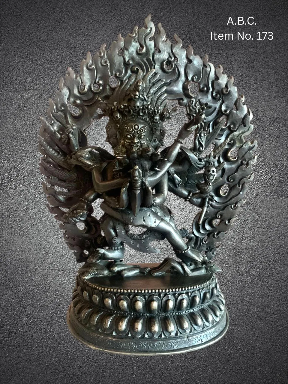 Depicted with a wrathful expression, multiple faces and arms, Bajrakilla wields the ritual phurba (kila dagger)—a symbolic spiritual tool used to pierce through ignorance, ego, and delusion. Despite his terrifying appearance, his essence is deeply compassionate, acting solely for the benefit of all beings. Our handcrafted Bajrakilla statues and ritual art pieces are intricately made by skilled Himalayan artisans using bronze, copper, or other sacred materials, often adorned with traditional iconographic detail and spiritual symbolism.
