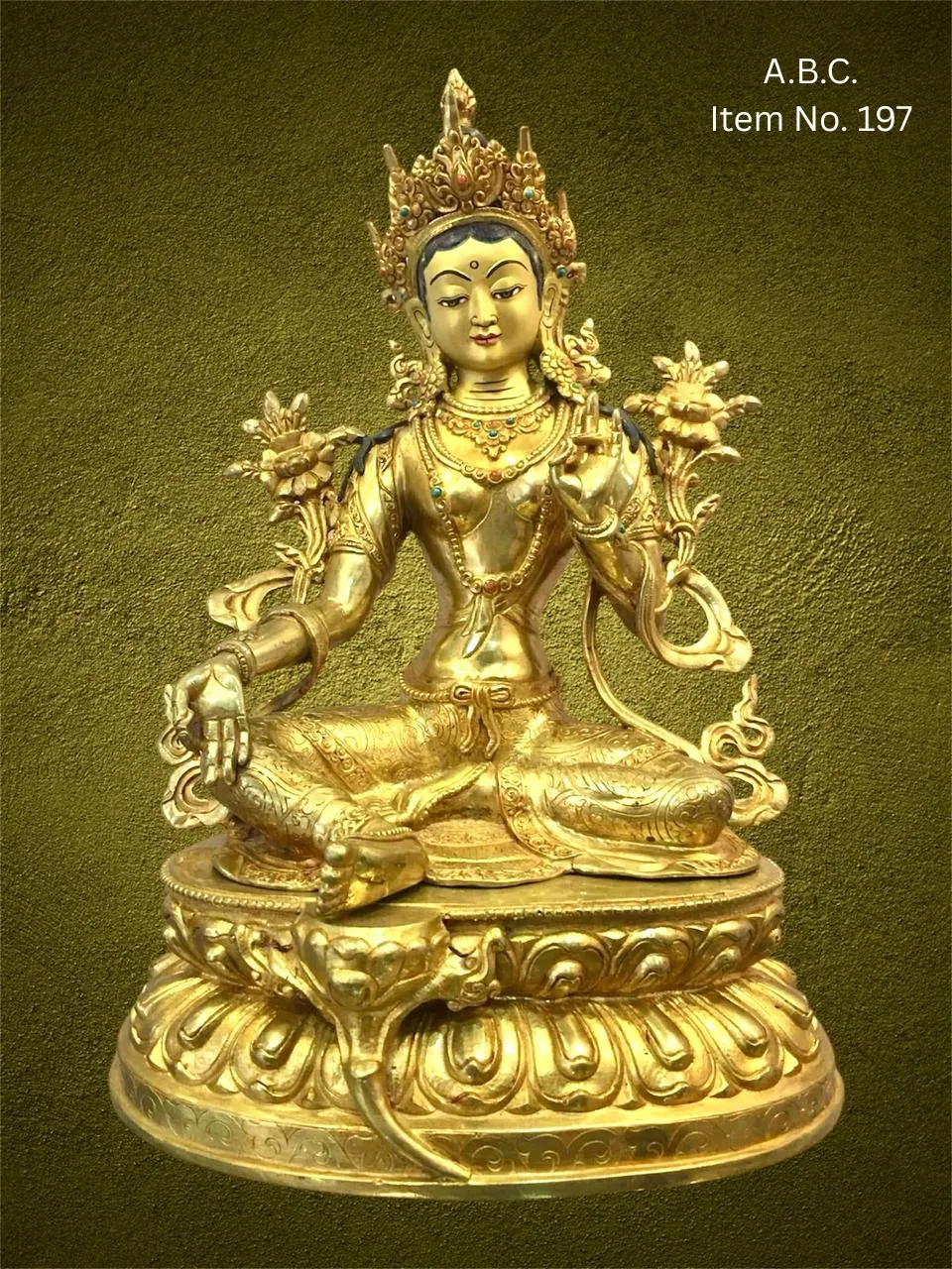 Our Green Tara handicrafts are meticulously handcrafted by skilled Himalayan artisans using traditional materials such as bronze, copper, or gold plating, and often adorned with turquoise, coral, or other precious inlays. Each piece—whether a finely detailed statue or a sacred thangka painting—embodies Tara’s serene presence and divine energy.