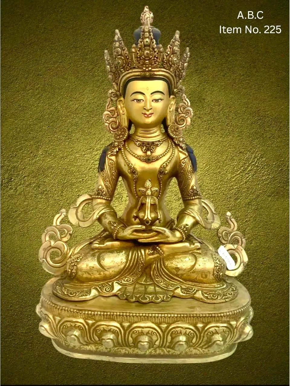 Our Aparmita handicrafts are handcrafted by skilled Himalayan artisans using traditional methods passed down through generations. Each statue is made from high-quality bronze, copper, or gold-plated alloys, often adorned with semi-precious stones like turquoise or coral to enhance its sacred symbolism and aesthetic beauty.