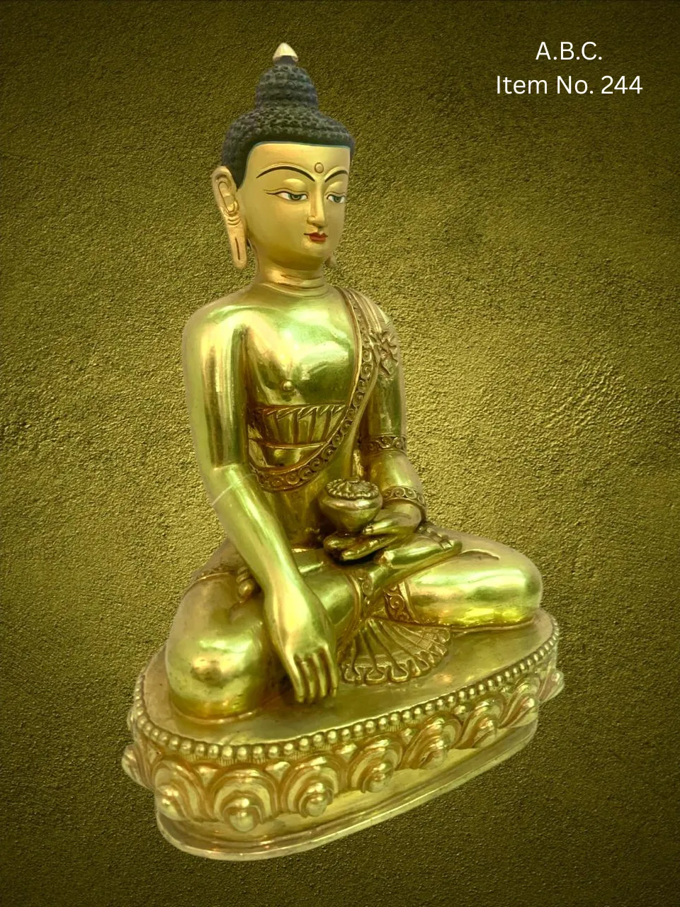 – Buddha seated in meditation posture, with right hand in “bhumisparsha mudra”, left hand holding a medicine bowl.