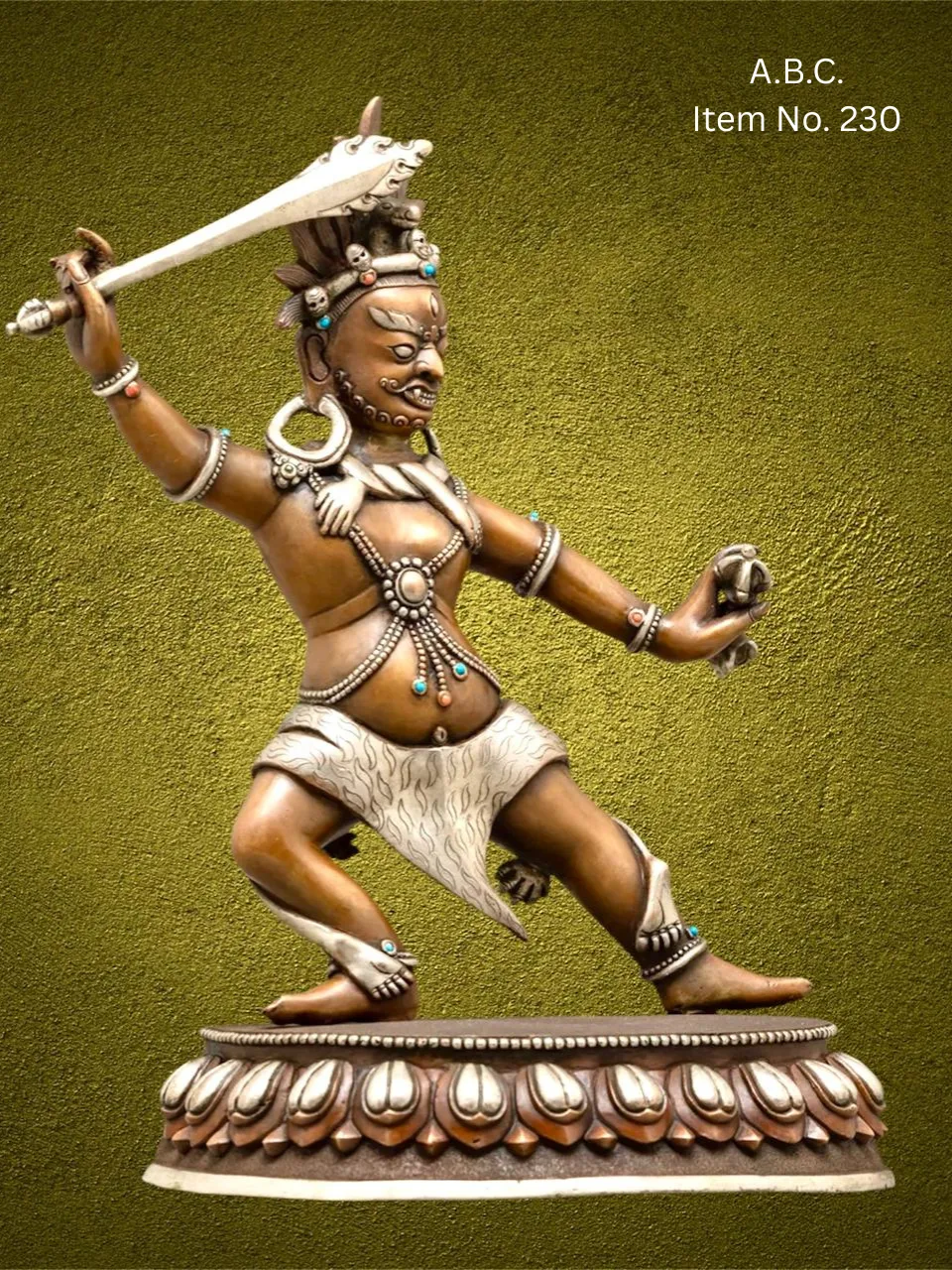 Our Khadgapani handicrafts are meticulously handcrafted by experienced Himalayan artisans using bronze, copper alloy, or gold-plated finishes. Intricate detailing and traditional techniques bring his dynamic posture and spiritual symbolism vividly to life. Many pieces are also adorned with turquoise, coral, or other auspicious stones, enhancing their aesthetic and spiritual presence.