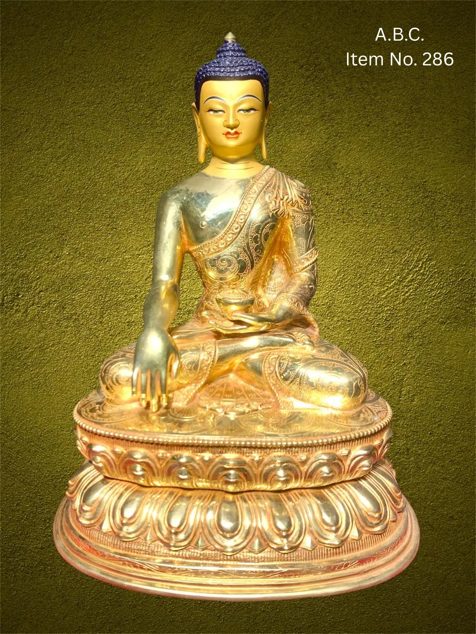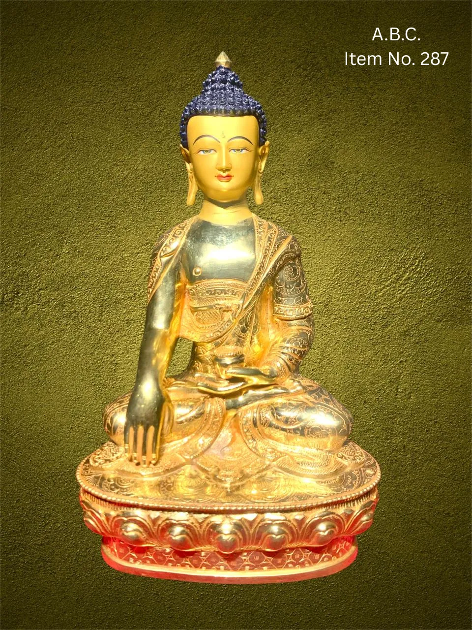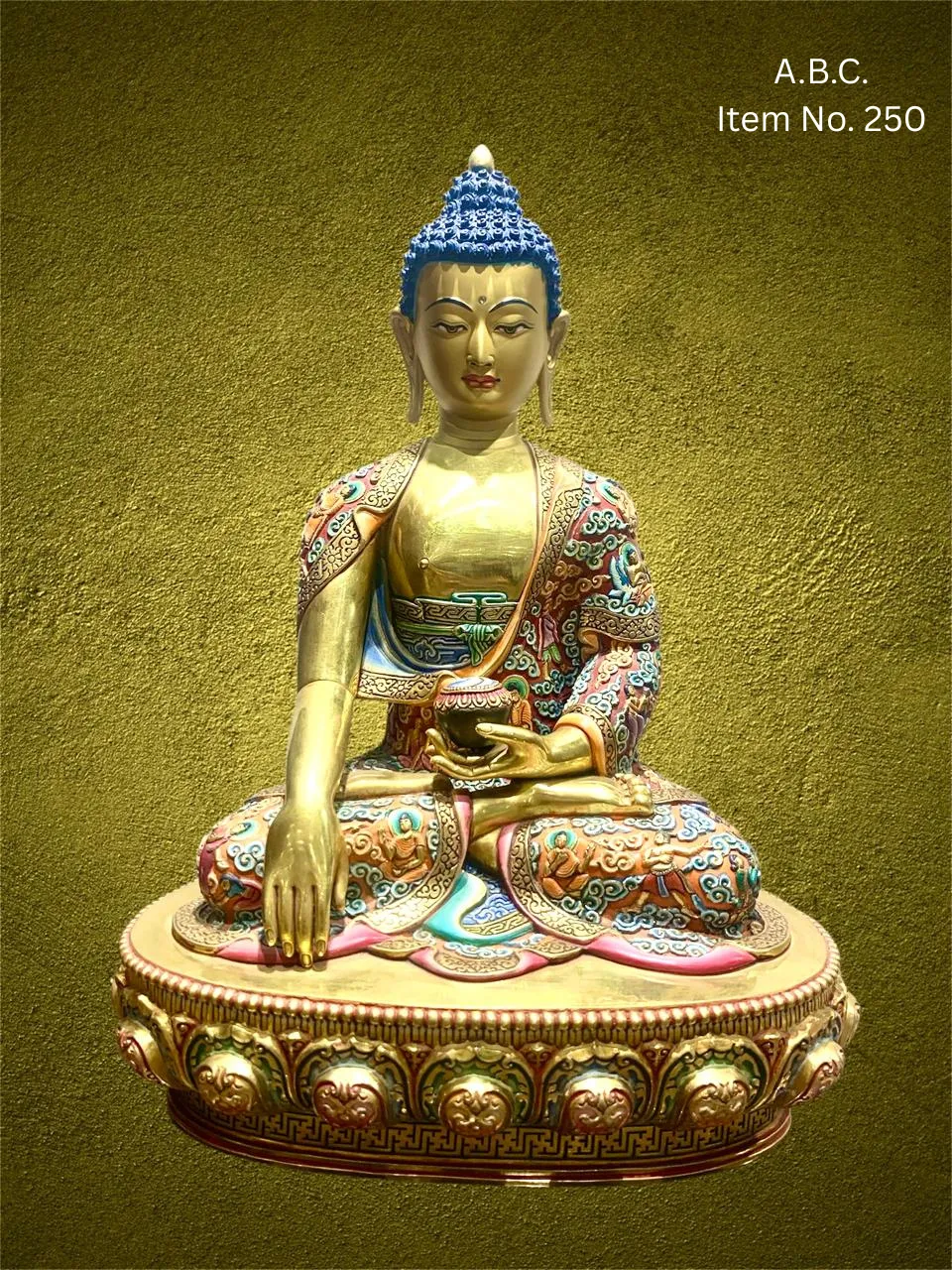 Our Medicine Buddha handicrafts are skillfully handcrafted by master artisans using traditional Himalayan techniques. He is depicted seated in a meditative posture, holding a healing myrobalan plant in his right hand and a bowl of medicinal nectar in his left, signifying the power to heal suffering and eliminate the causes of disease.