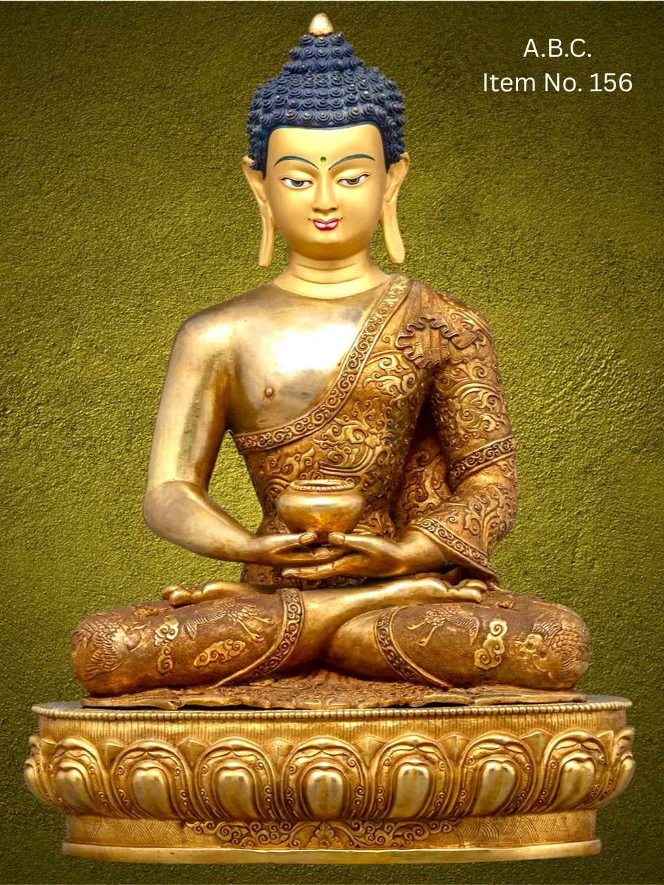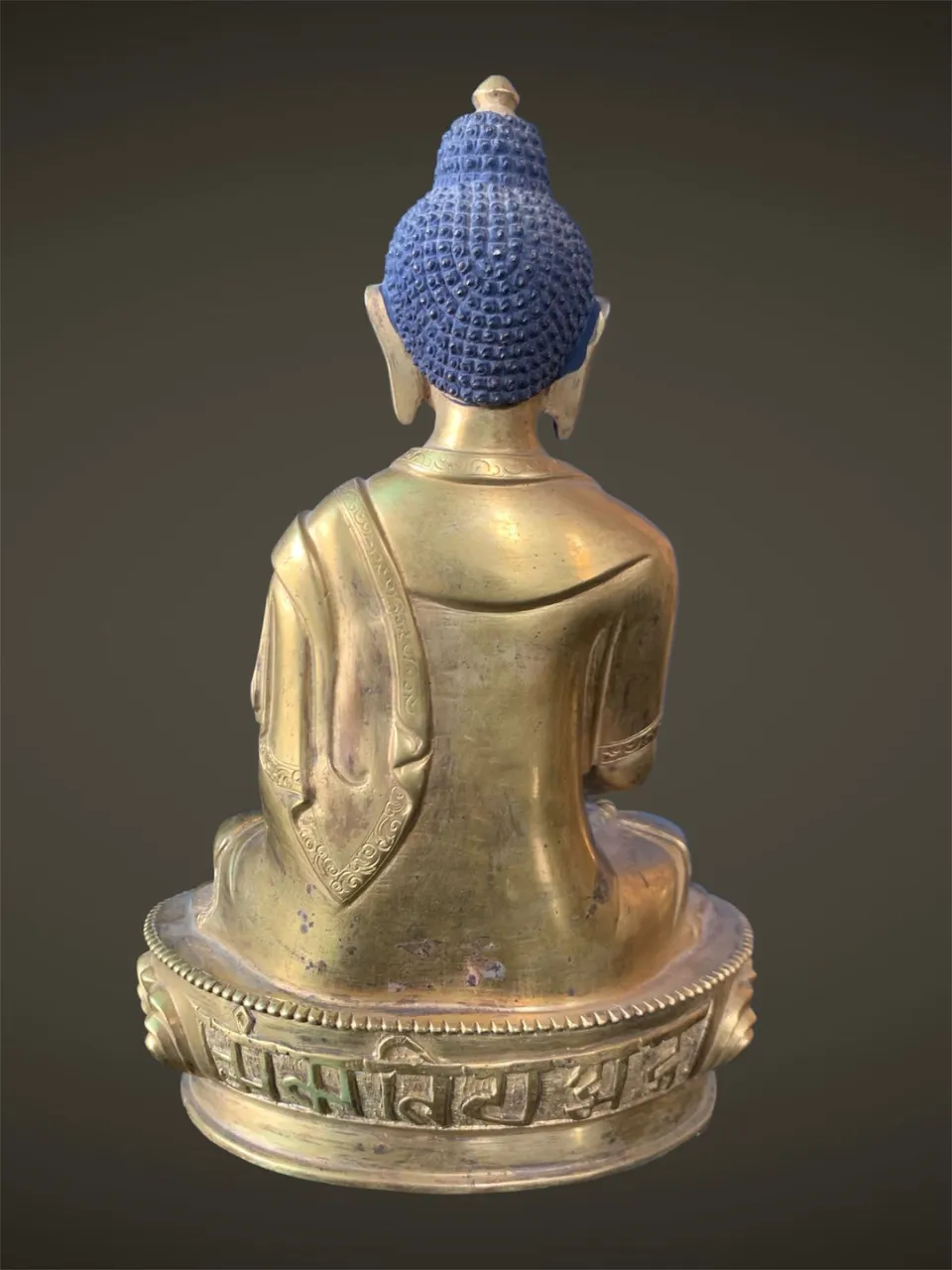 – Medicine Buddha (Bhaisajyaguru) in seated posture, right hand in earth-touching mudra, left hand holding a medicine bowl. Often with blue or deep bronze tones.
