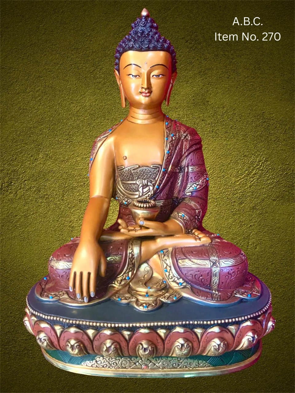 # Material: 24K Mercury Gold Gilded, Acrylic Paintings, Copper Body, Handcraved.