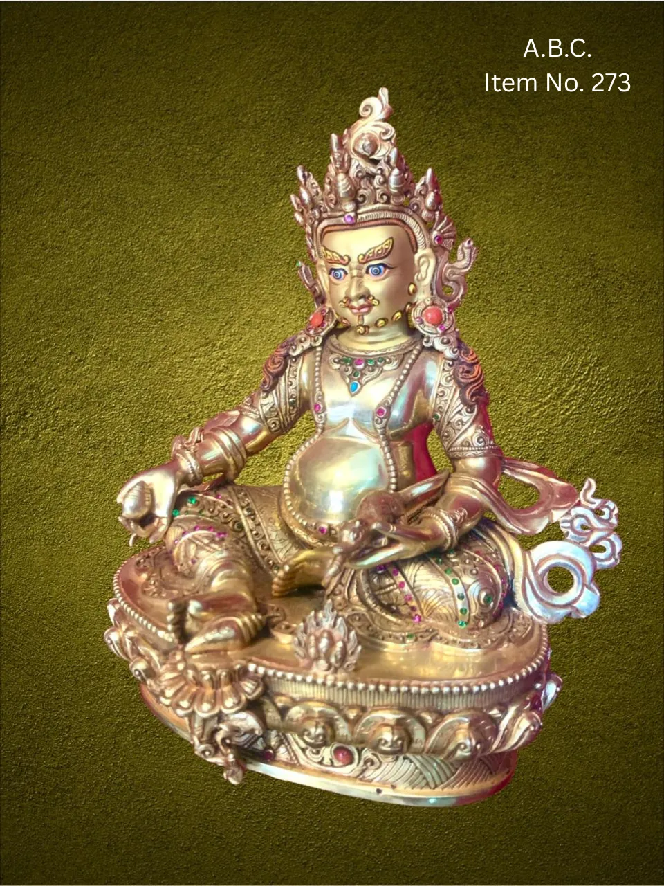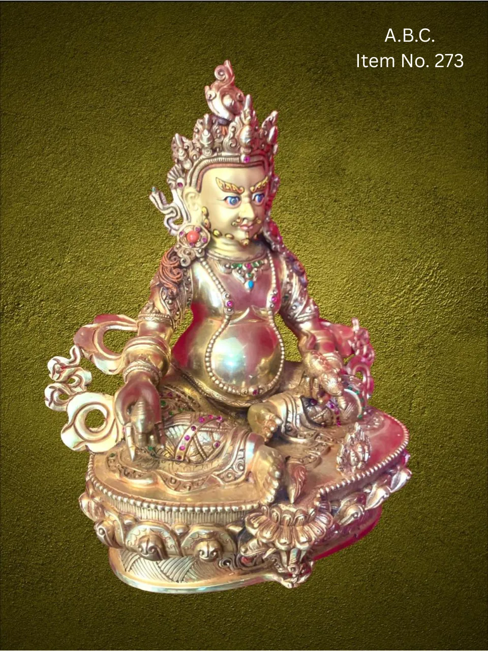 He is often depicted as a regal and benevolent figure, adorned with jewels and gold, holding a money pot, mongoose, or treasure-spouting fruit—symbols of endless fortune and generosity. His presence invites not only material wealth but also the spiritual responsibility of using abundance for good.