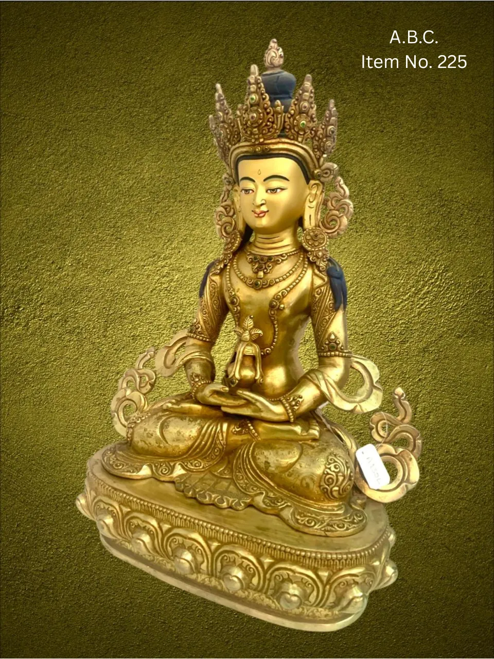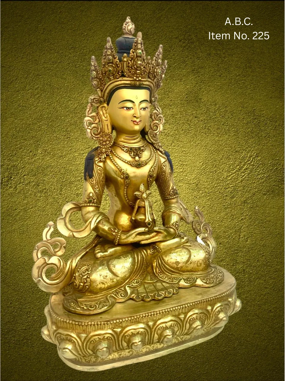 Our Aparmita handicrafts are handcrafted by skilled Himalayan artisans using traditional methods passed down through generations. Each statue is made from high-quality bronze, copper, or gold-plated alloys, often adorned with semi-precious stones like turquoise or coral to enhance its sacred symbolism and aesthetic beauty.