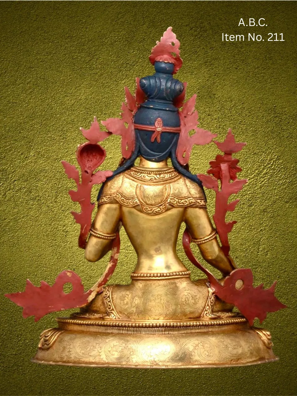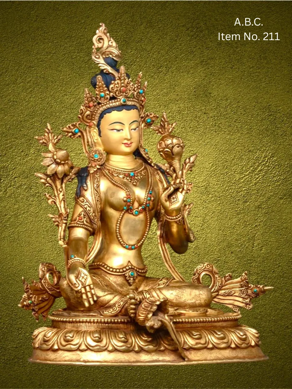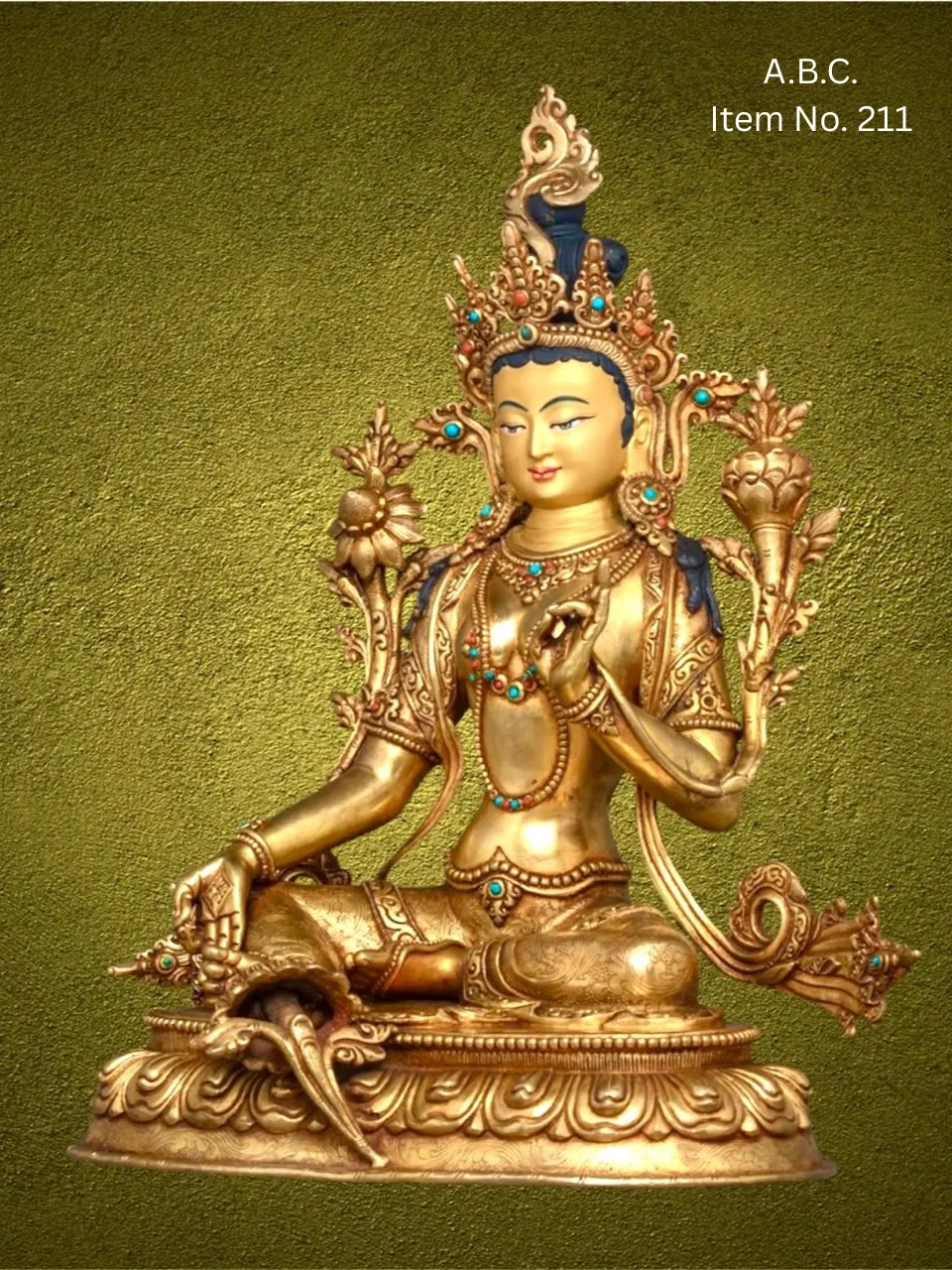– Green Tara seated in royal ease posture, right hand in blessing mudra, left hand holding a lotus.