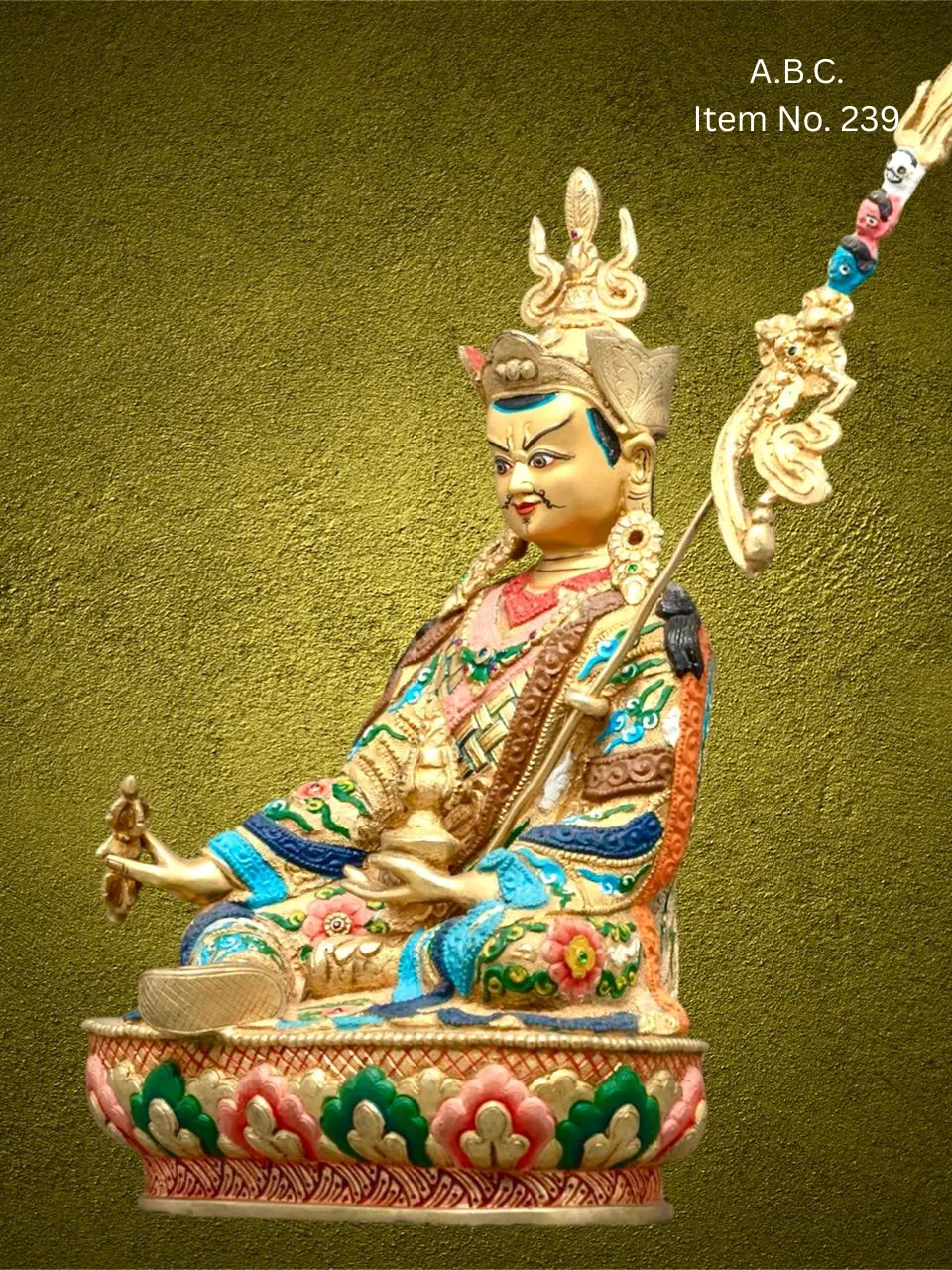 Having a statue of Guru Rinpoche is believed to protect against obstacles, dispel negative energies, and awaken inner wisdom. He is especially venerated by practitioners seeking spiritual guidance, transformation, and deeper insight on the path to enlightenment.