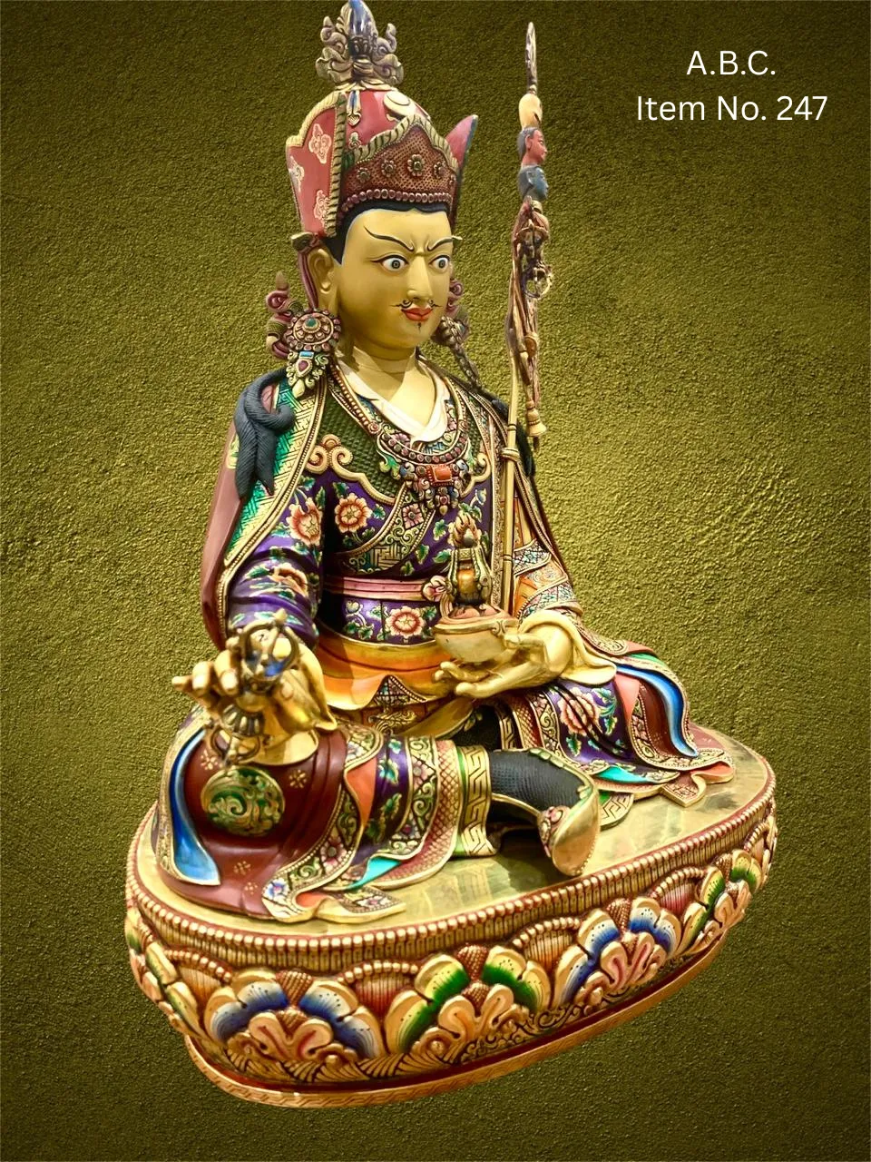 Having a statue of Guru Rinpoche is believed to protect against obstacles, dispel negative energies, and awaken inner wisdom. He is especially venerated by practitioners seeking spiritual guidance, transformation, and deeper insight on the path to enlightenment.