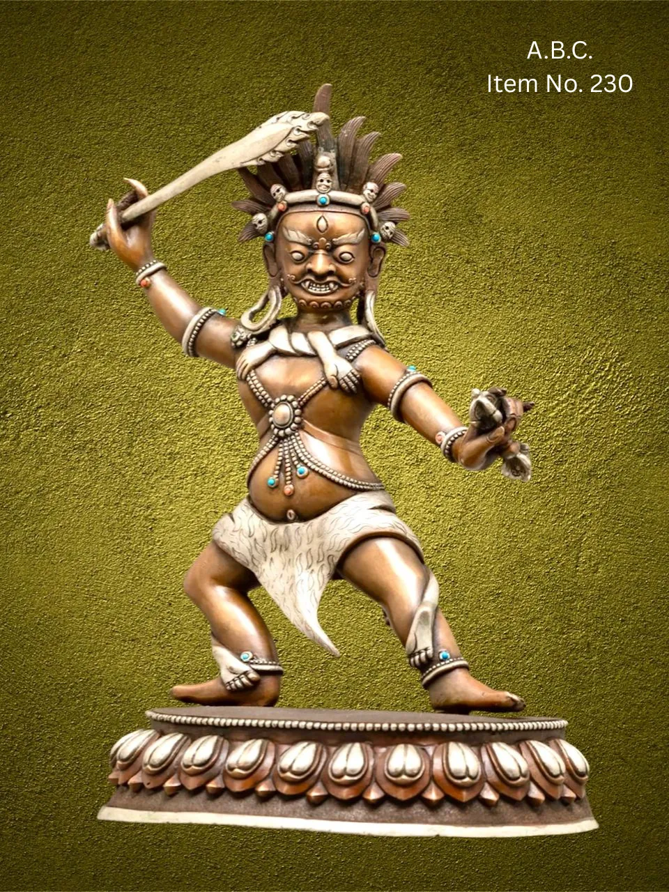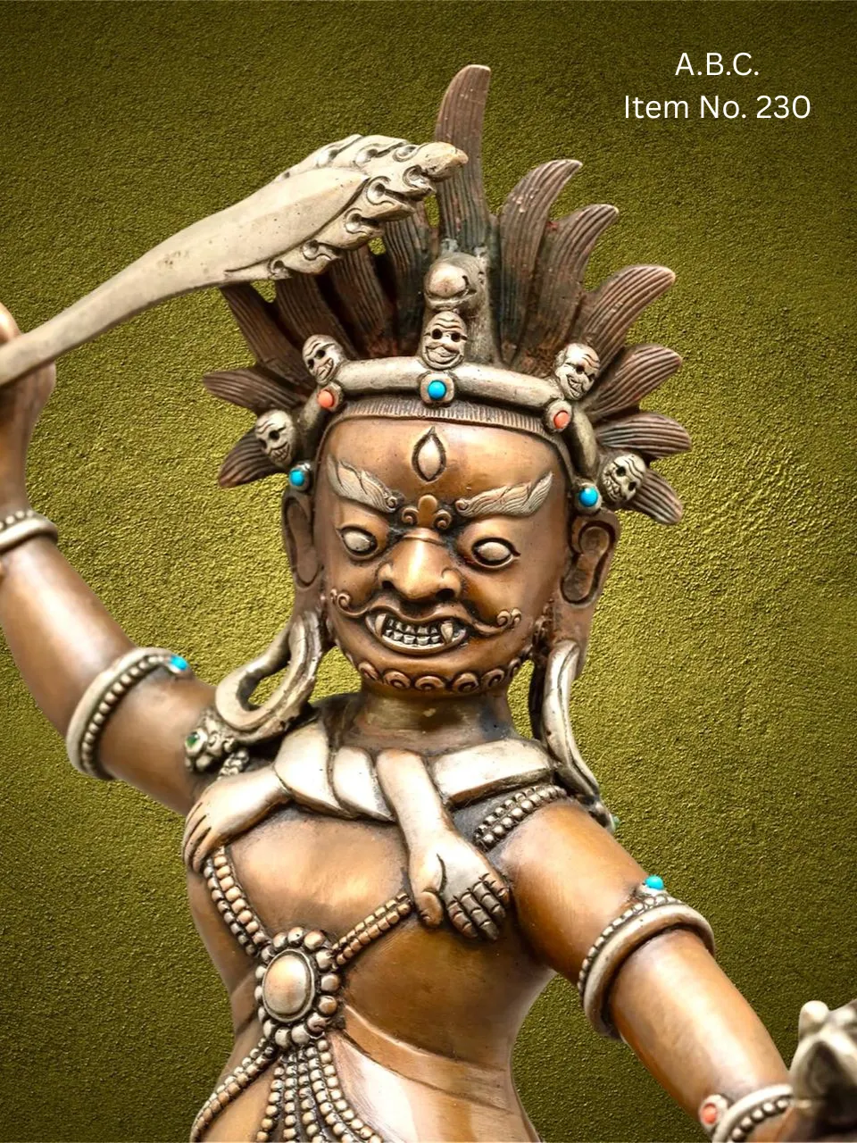 Our Khadgapani handicrafts are meticulously handcrafted by experienced Himalayan artisans using bronze, copper alloy, or gold-plated finishes. Intricate detailing and traditional techniques bring his dynamic posture and spiritual symbolism vividly to life. Many pieces are also adorned with turquoise, coral, or other auspicious stones, enhancing their aesthetic and spiritual presence.